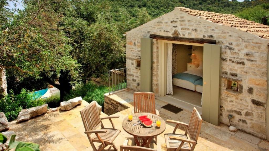 The Rou Estate is located in the foothills of Mount Pantokrator on the North East Coast of Corfu, close to the popular sea front villages of Agni, San Stefanos and Kassiopi. Rou was once a ruined hamlet of traditional stone houses, which has been carefully restored and brought back to life, creating 16 beautiful properties each with their own individual flair and creative design.
