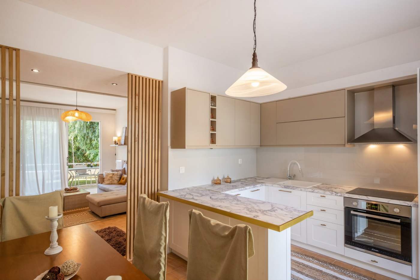 It consists of 2 spacious bedrooms, kitchen, living room and bathroom with jacuzzi. It also has an additional exterior storage space. The apartment is sunny and bright, perfect for someone who is looking to own a property close to Corfu Town center. Also, it is ideal for a person with disabilities as it is on the ground floor and therefore very easily accessible.