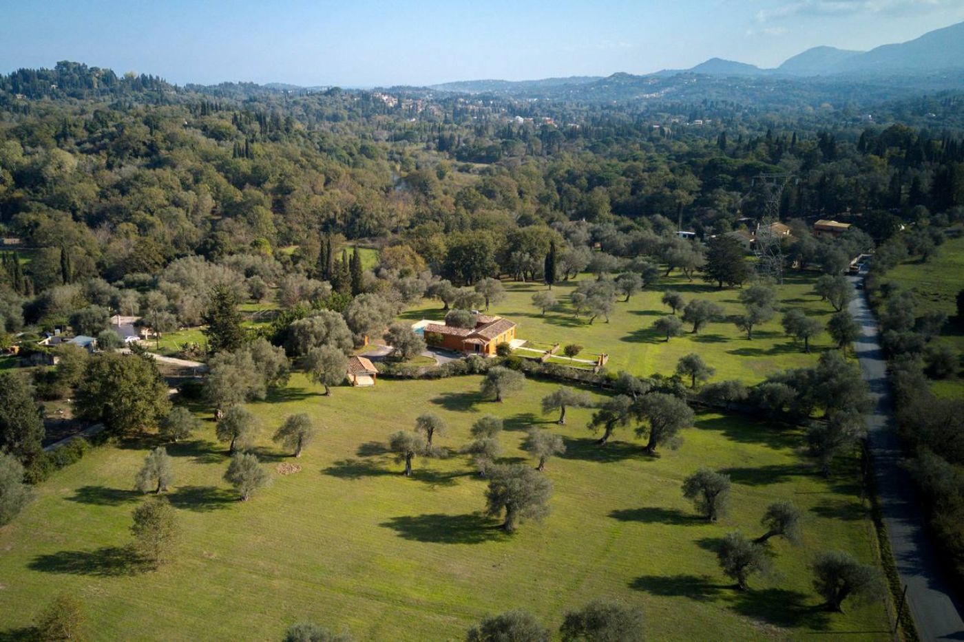 This unique villa of 185sqm is approached via a private driveway that winds up to the impressive modern country house. Situated in a great position in the area of Danilia, in a fold in the land within 42.000sqm, it enjoys privacy and protection but benefits from far-reaching views across rolling, wooded countryside.