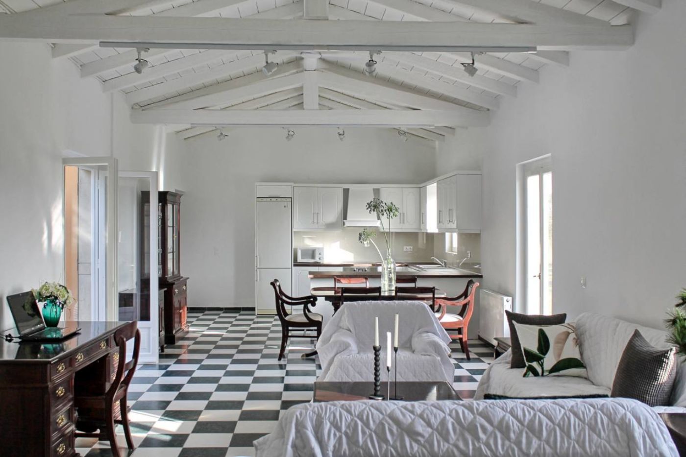 The villa is located in a quiet yet central area, in the heart of Corfu, and features easy access to Gouvia where the International Marina is, as well as the West Coast and the beautiful beaches of Glyfada, Kontoyialos, Ermones and Myrtiotissa.