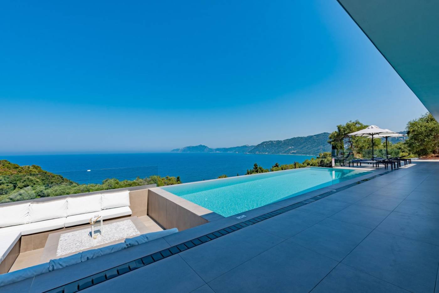 A fantastic new build villa of 180 square meters at Pentati with breathtaking view and just a few meters from the beachfront with a little boat harbour.It is a ground floor modern villa that welcomes you to a big living room with a fireplace and kitchen .Bedrooms are spacious with two of them hosting double beds and bathrooms and the other two with single beds. There is a walking closet and a laundry room .